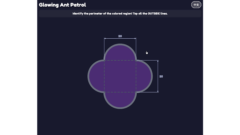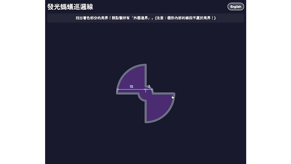學習公式: 當你成功選出所有正確的外圍邊界後,一個金色的 公式面板 會彈出,為你展示這個周界的完整計算過程。